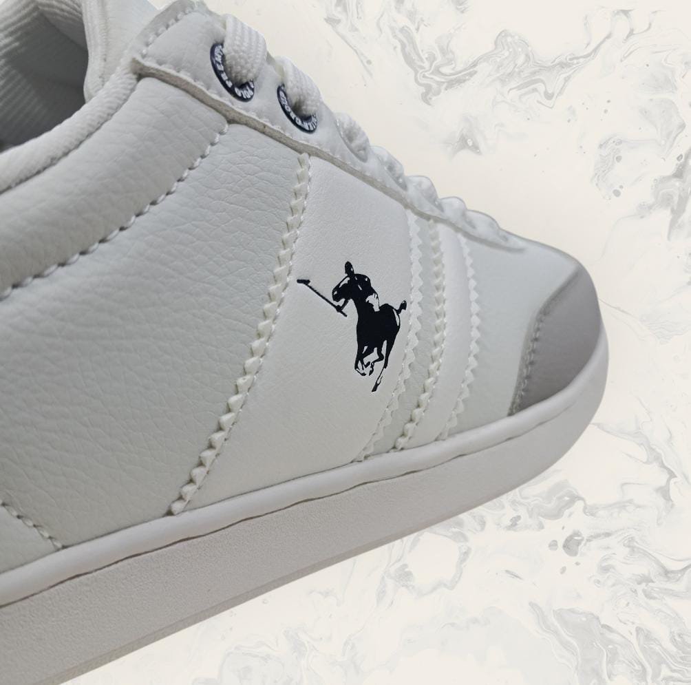 Los tenis Polo Premier Group casual blancos clásicos para hombre son una elección infalible para quienes buscan un calzado versátil, cómodo y con un estilo limpio y atemporal. Su diseño minimalista y elegante los convierte en el complemento ideal para cualquier look urbano o casual.